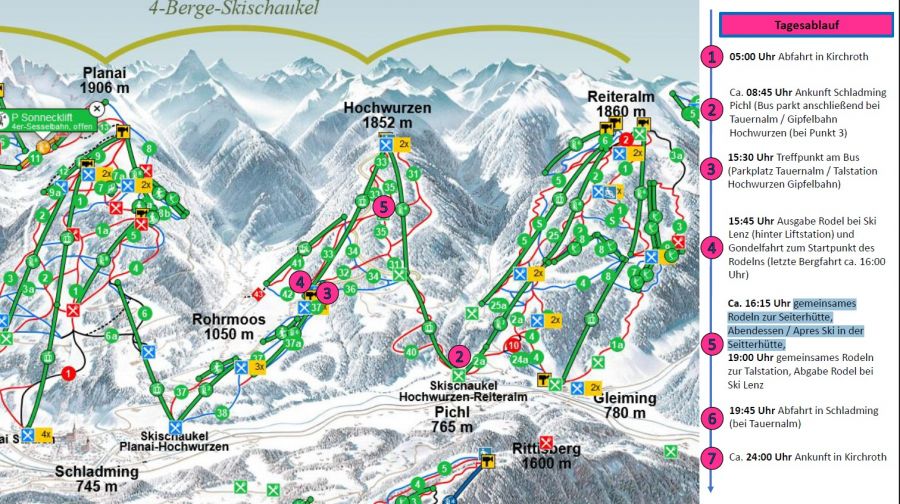 - Ankunft Skigebiet Schladming (Pichl) 08:45 ((Punkt 2)